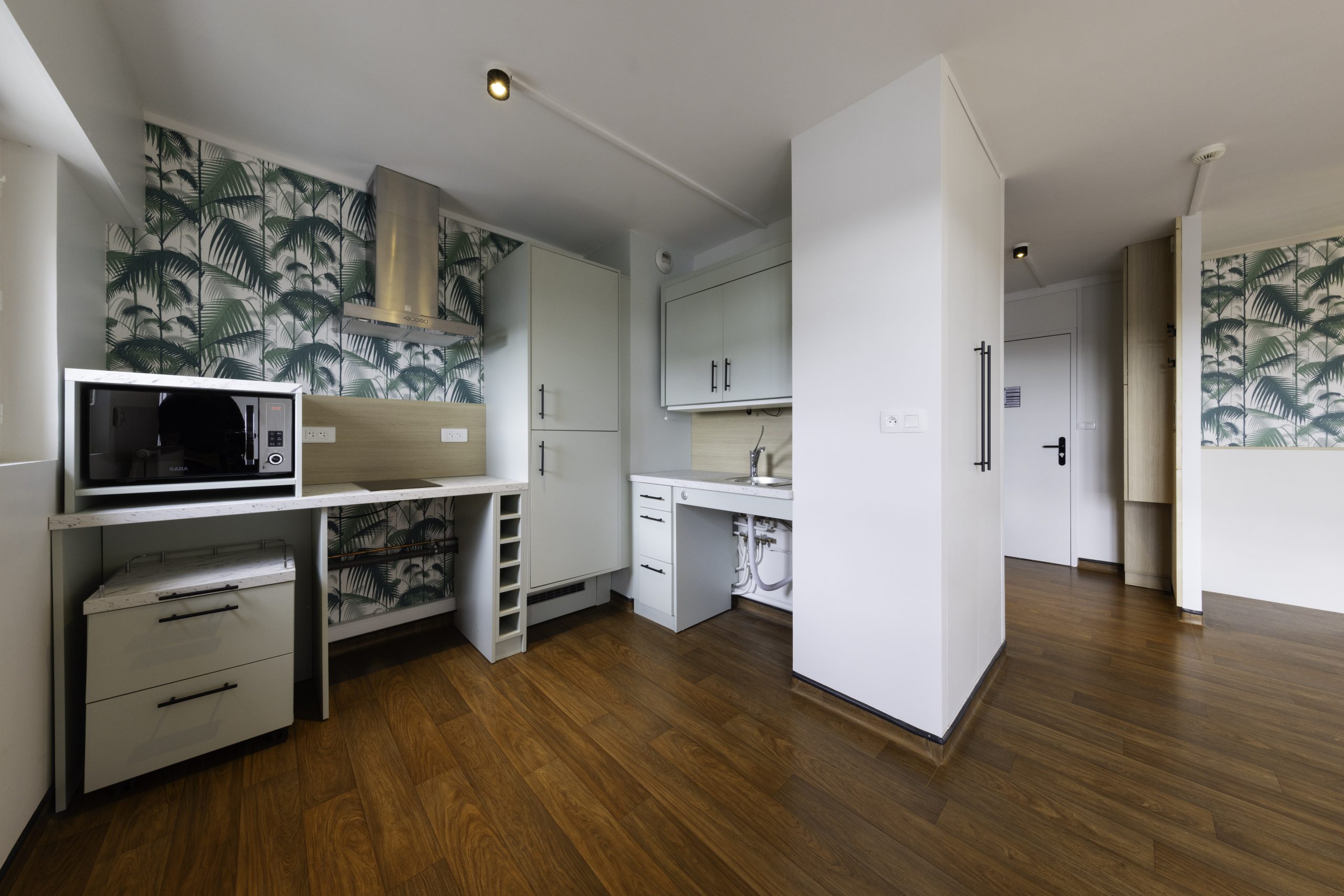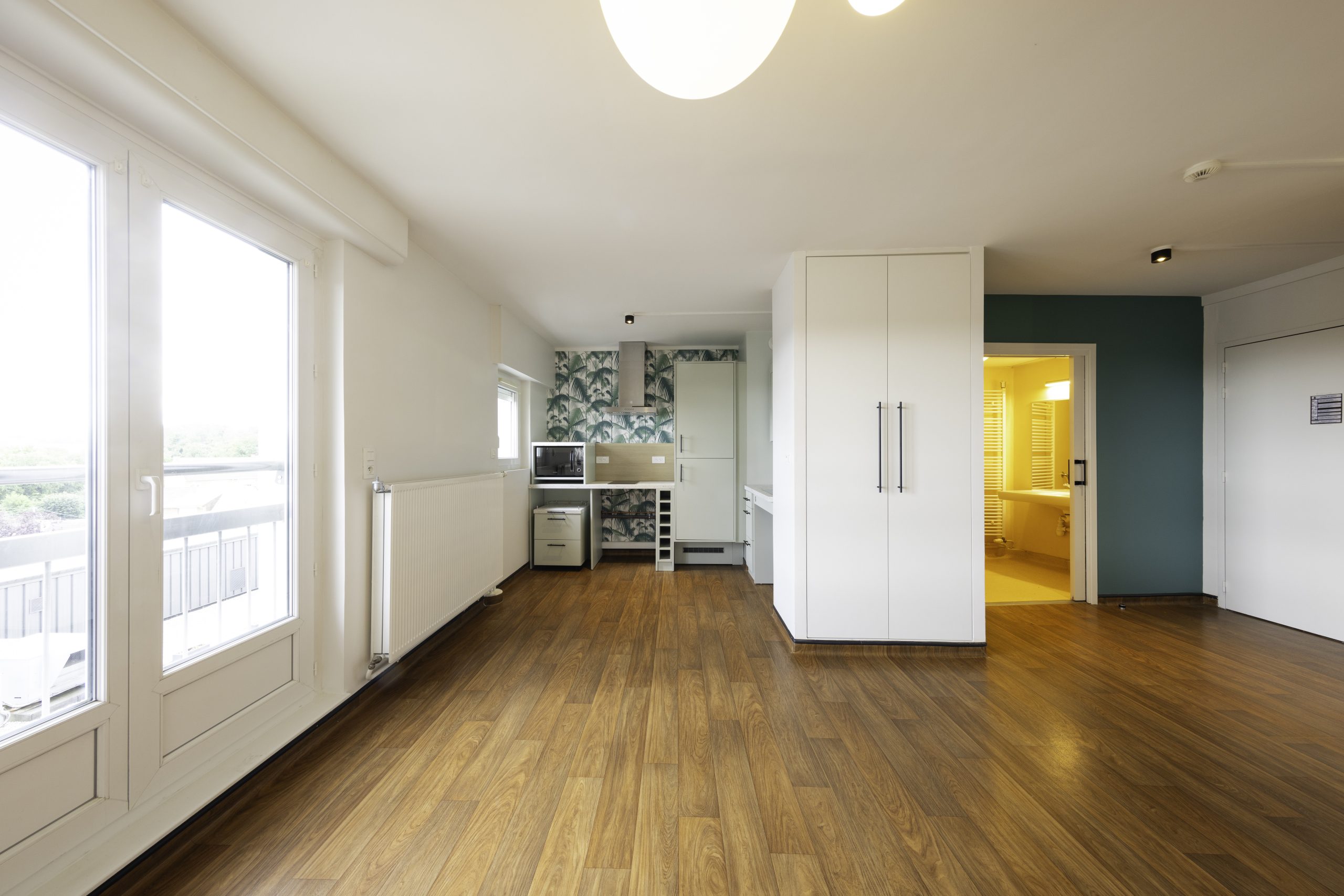 À taille humaine, la résidence dispose de 24 studios de type T1 (33 m²) composés d’une pièce principale, d’un espace cuisine avec cuisine adaptée comprenant : plaques en vitrocéramique, réfrigérateur, hotte aspirante, four à micro-ondes. Le studio dispose également d’une salle de bains avec douche à l’italienne, lavabo et WC.
